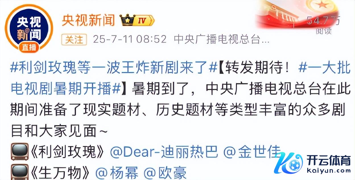 倒是央视预报了暑期档要开播的两部新剧,有点话题。倒不是说多期待是好剧,仅仅和杨幂两大流量好意思女偶遇了,一边是迪丽热巴和金世佳合营的《利剑玫瑰》,一边是杨幂欧豪合营的《》。
