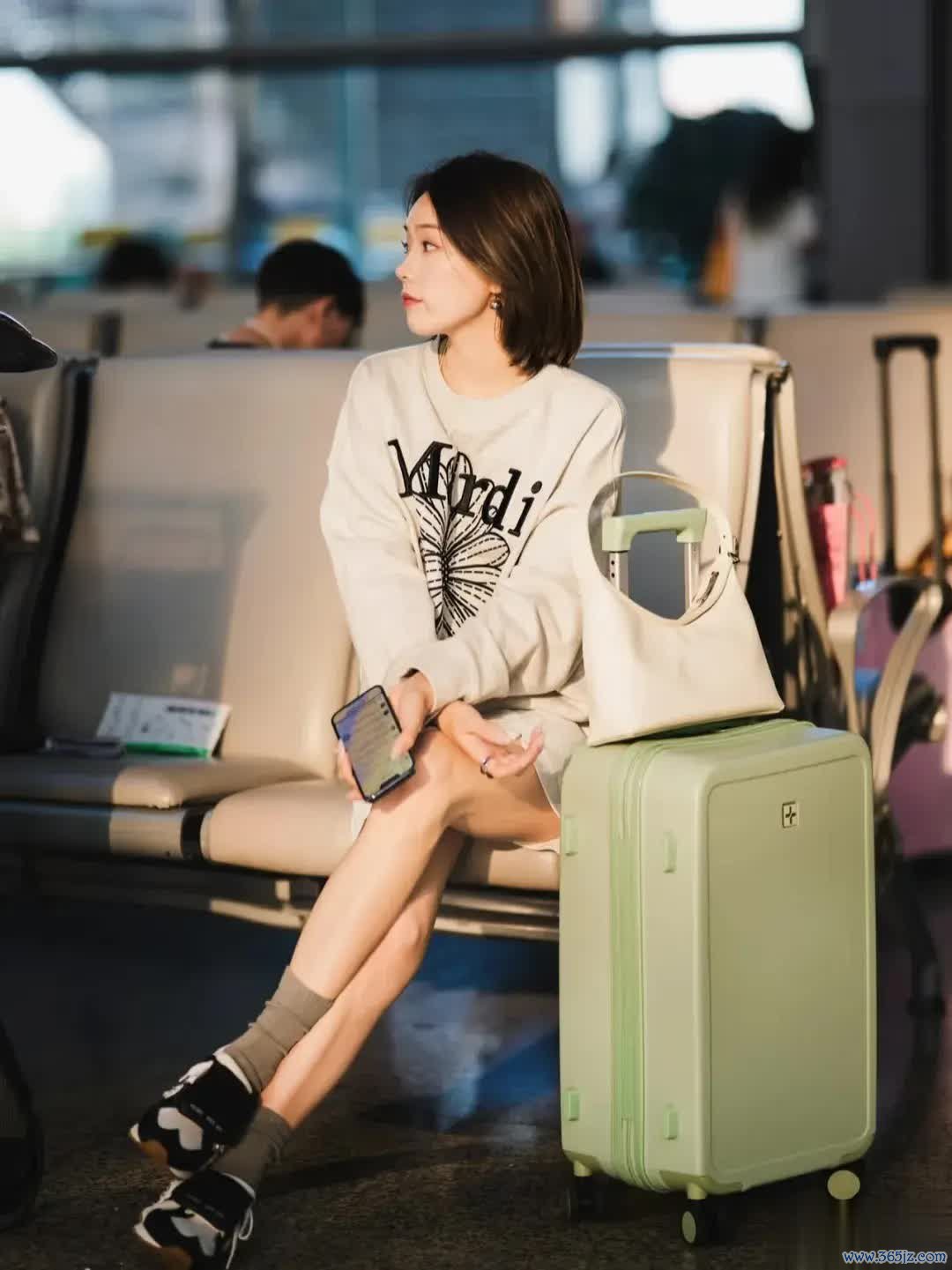 候车或候机时,咱们不错将行李箱放在身旁,双手搭在腿上,拿入部下手机,双腿交叠。头微微偏向一侧,目光当然减轻,若有所念念。早晨或傍晚,不错遴选有阳光洒入的座位,轻柔的阳光打在身上,让画面更具氛围感,超越安稳恭候的旅行情愫,和睦唯好意思又纵欲。