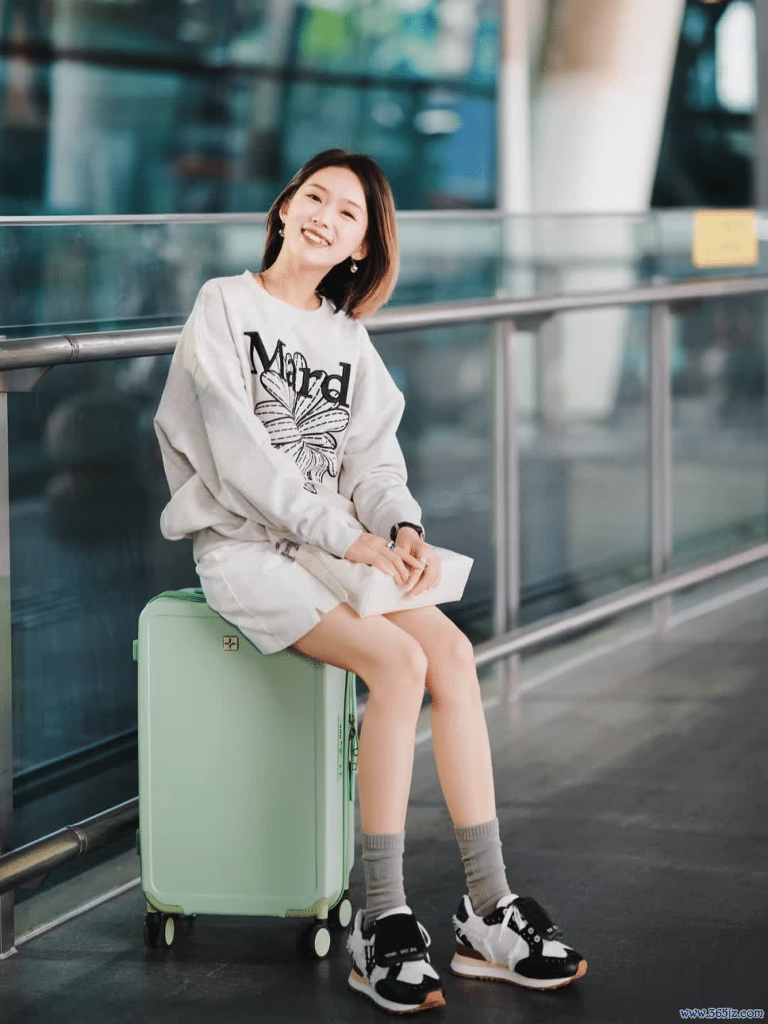 咱们也不错靠着玻璃窗,坐在行李箱上,双手抱住包包,头微微歪向一侧,对着镜头展现当然的笑脸。拍摄时遴选正面略高的角度,将配景虚化,透明极新的玻璃,能让扫数东说念主物超越且亮堂,既俏皮又明朗,很是适合共享路径的轻快感。