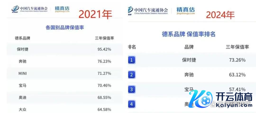 看,对比2021年,传统车企中的德系车,如今的三年保值率,强大跌了20%高下。