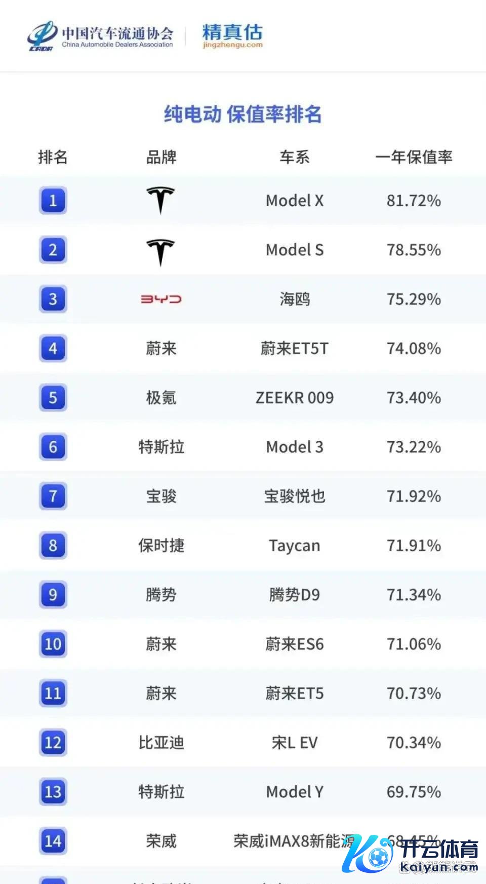 中汽协也给出了纯电动车型保值率,但却是1年的。