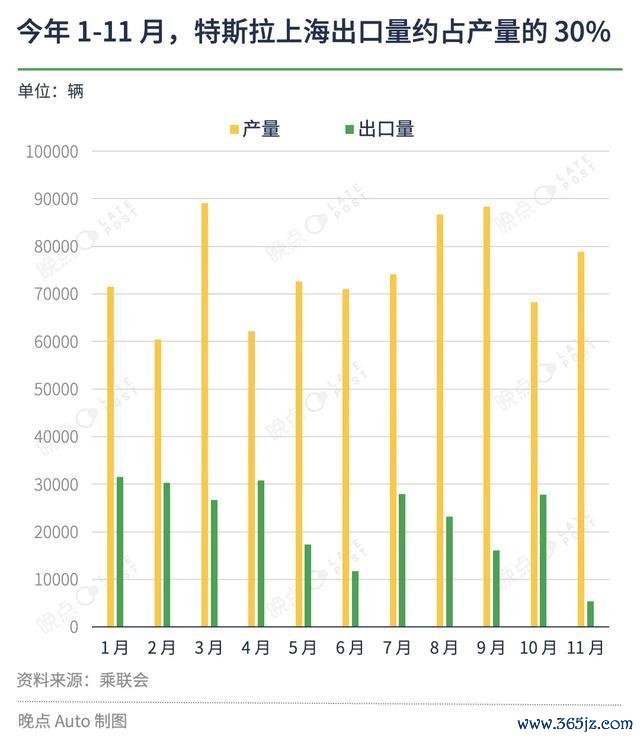 2021 年,特斯拉全年请托新车 93.6 万辆,上海工场占其中的 51.7%。本年 10 月 11 日,特斯拉上海工场下线了第 300 万辆整车。乘联会数据解析,本年 1-11 月,特斯拉上海工场出口量约占其同时产量的 30.2%。