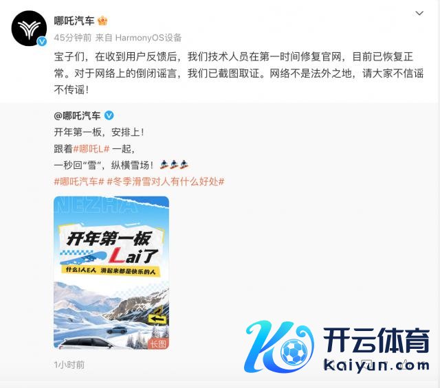 本日,# 哪吒汽车官网出现非常 # 的词条登上了微博热搜位置。据多家媒体报说念,在昨日凌晨哪吒汽车官网就出现打不开的情况,页面披露"系统珍视中kaiyun网址,请稍后再试"。对于网站打不开的音讯,有哪吒汽车磋议职责主说念主员修起称,工作器崩了,公司正在珍视中,展望午间不错科罚问题。