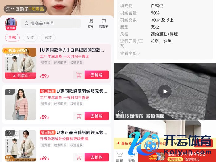 另外,还有一些商家打着闻明品牌“尾货”、“孤品”旗子销售平价羽绒服,多个名看法羽绒服都放在一条商品连气儿中上架,无法提供每款羽绒服的看护先容。而其辅导亏蚀者下单的话术是强调商品为“柜柜货”、数目有限等。诚然更具吸引力的还是价钱,在这些直播间里,几十元就不错买到一件堪称是鹅绒材质的中长款羽绒服。