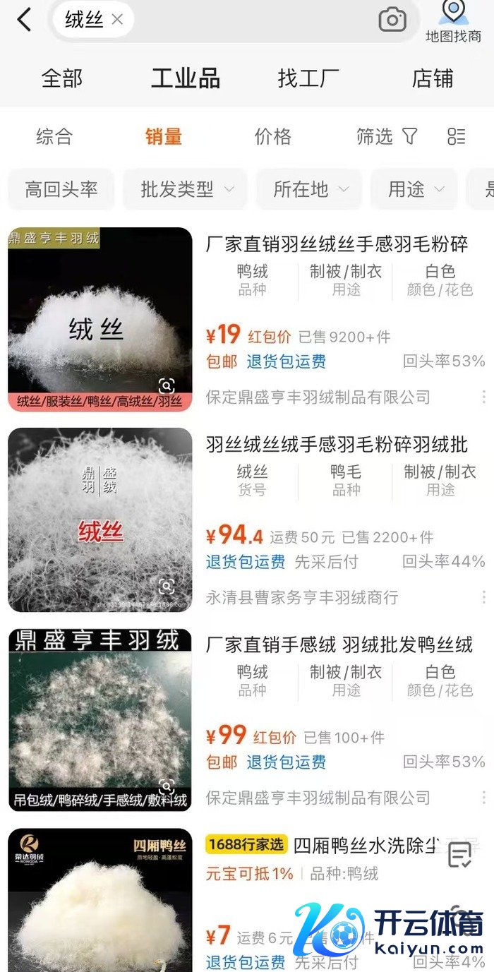 电商平台上销售的绒丝原材料
