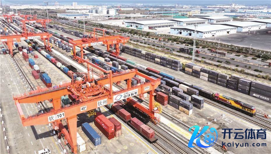 12月5日,满载新加坡产聚乙烯、广州产瓷砖和工件夹具的X9578次西部陆海新通说念铁海联运班列从钦州铁路集装箱中心站逐渐驶出,发往重庆协作村站。边界本日,本年西部陆海新通说念铁海联运班列累计输送货色已达到86.58万标箱,同比增长8.3%。中新社发 高东风/摄