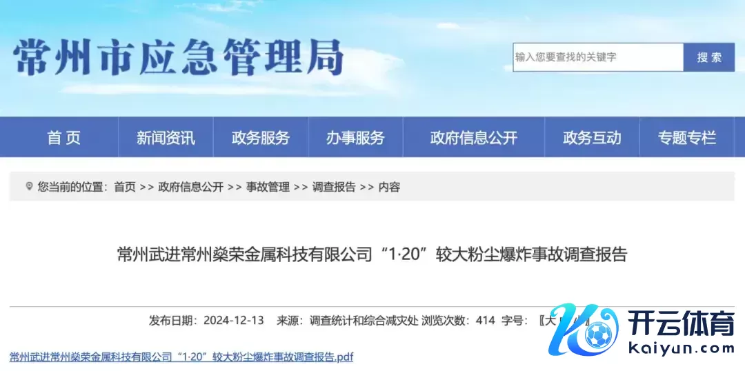 近日,常州市救急治理局网站公布《常州武进常州燊荣金属科技有限公司“1·20”较大粉尘爆炸事故造访敷陈》。