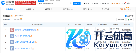 新浪科技讯 3月4日上昼音问,天眼查App表露,近日,广州讯飞零卖有限公司、石家庄科大讯飞新零卖有限公司诞生,法定代表东谈主均为徐荣盛,注册成本均为10万东谈主民币,主义限制包括东谈主工智能硬件销售、智能家庭奢侈征战制造、智能机器东谈主销售、智能无东谈主飞翔器销售等。鼓吹信息表露,上述公司均由科大讯飞(002230)旗下安徽讯飞新零卖有限公司全资合手股。