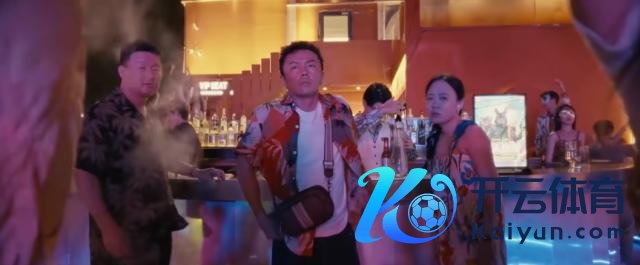 李红旗(谢苗 饰)也穿上了花衬衫。