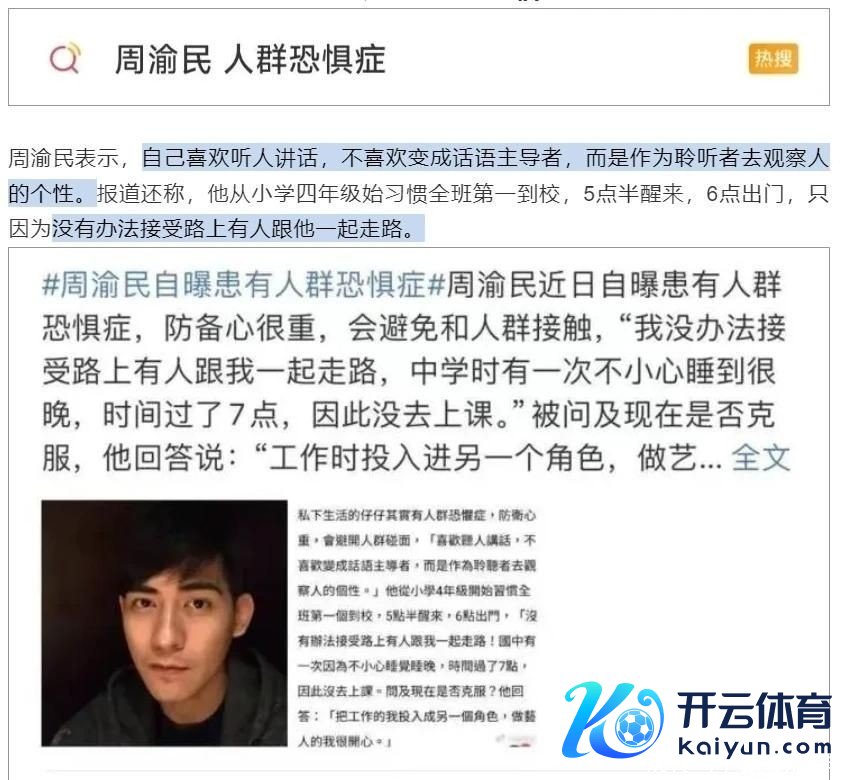 鲜为东谈主知的是,周渝民曾在2023年坦诚共享我方持久受东谈主群懦弱症困扰,对外界保持自然警悟,习尚性遁入密集酬酢场景。