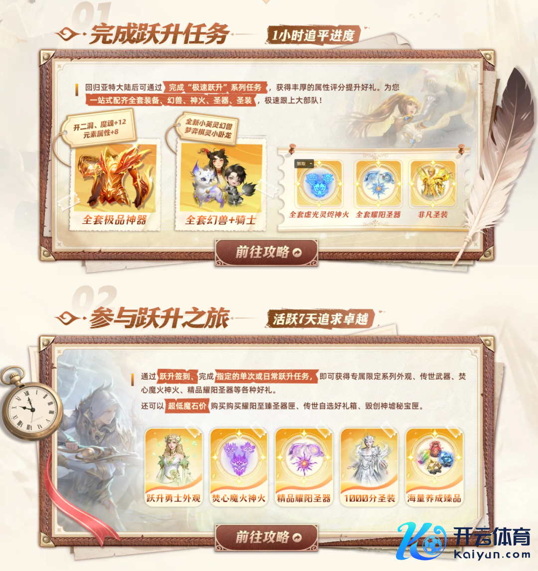 ▶“追忆之旅”举止全面升级为“跃升之旅”,奖励大幅度升级!(注:东说念主物品级达到130级、成神,且着手30日未登录的硬人可接取该任务。)