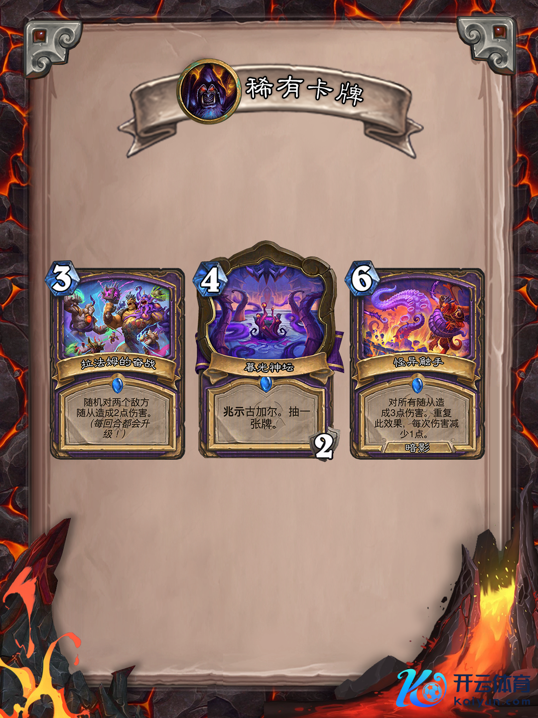 对总计随从形成3点伤害,再形成2点,再形成1点。一张可形成多段伤害的AOE不错较好管理一火语、复生、圣盾等复杂的敌手局面。