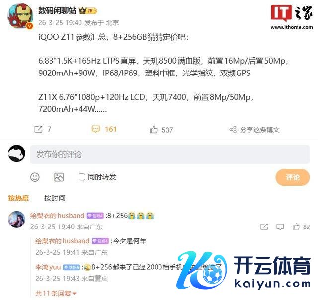 当今,iQOO Z11 系列的中枢确立已公布。IT之家提防到,博主 @数码闲扯站 当天发文汇总了系列新机确立,并泄漏将提供 8GB+256GB 规格版块。